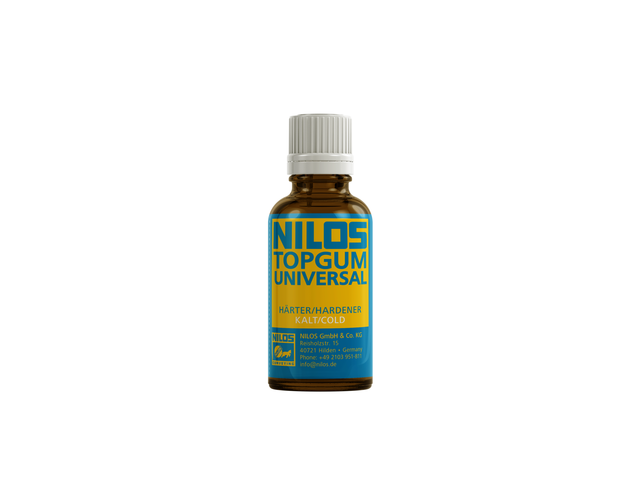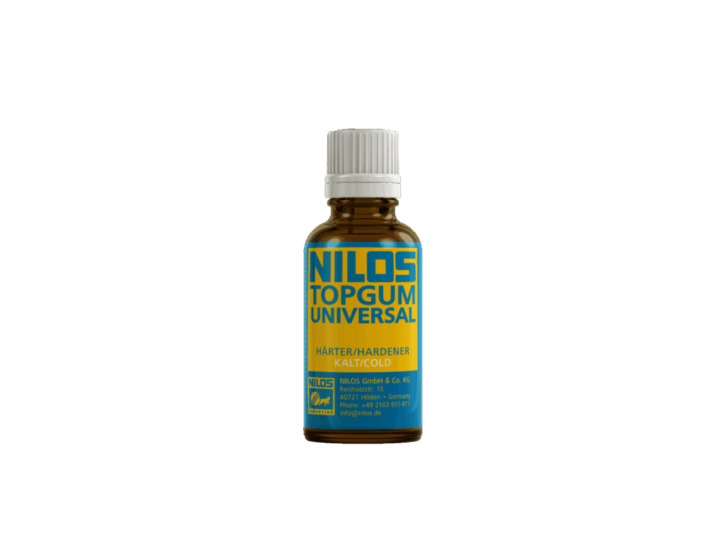 The NILOS COLD TOPGUM Universal Hardener is a transparent, 33g hardener compatible with all NILOS cold bonding adhesives. Designed for easy, accurate mixing using a pre-measured bottle and drum system, it activates the adhesive to ensure strong, reliable bonds across rubber, metal, and fabric surfaces. Distributed by ASGCO®, it simplifies the bonding process while maximizing adhesion performance.
